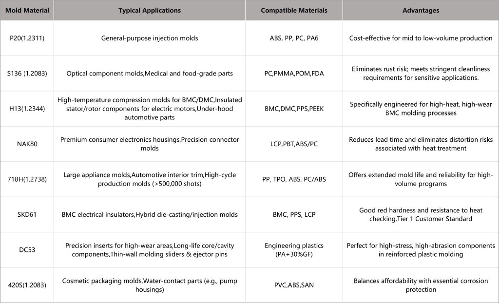 Large appliance molds,Automotive interior trim,High-cycle production molds (>500,000 shots)